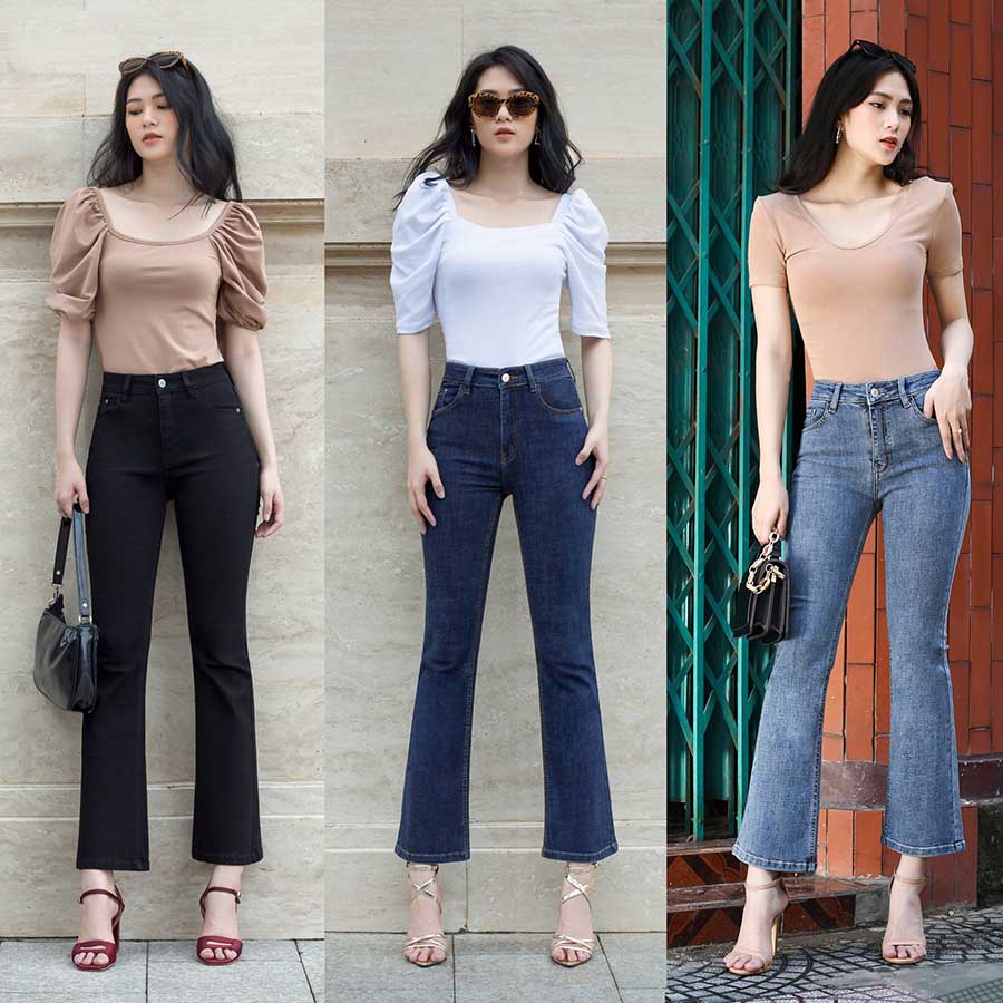 Khác với những chiếc quần túi hộp, quần jean ống loe vừa có thể đem đến sự quyến rũ mà cũng có thể đem đến phong cách cá tính và năng động. Kết hợp cùng áo phông hình ngộ nghĩnh, một đôi giày sneaker độn đế. Chắc chắn các chị em sẽ thành tâm điểm của mọi ánh nhìn.