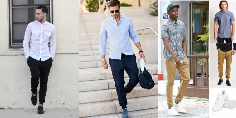 Một chiếc áo sơ mi trắng đơn giản hay thậm chí là áo sơ mi hoa hòe hoa sói màu mè cũng có thể kết hợp siêu hoàn hảo với những chiếc quần jogger.
